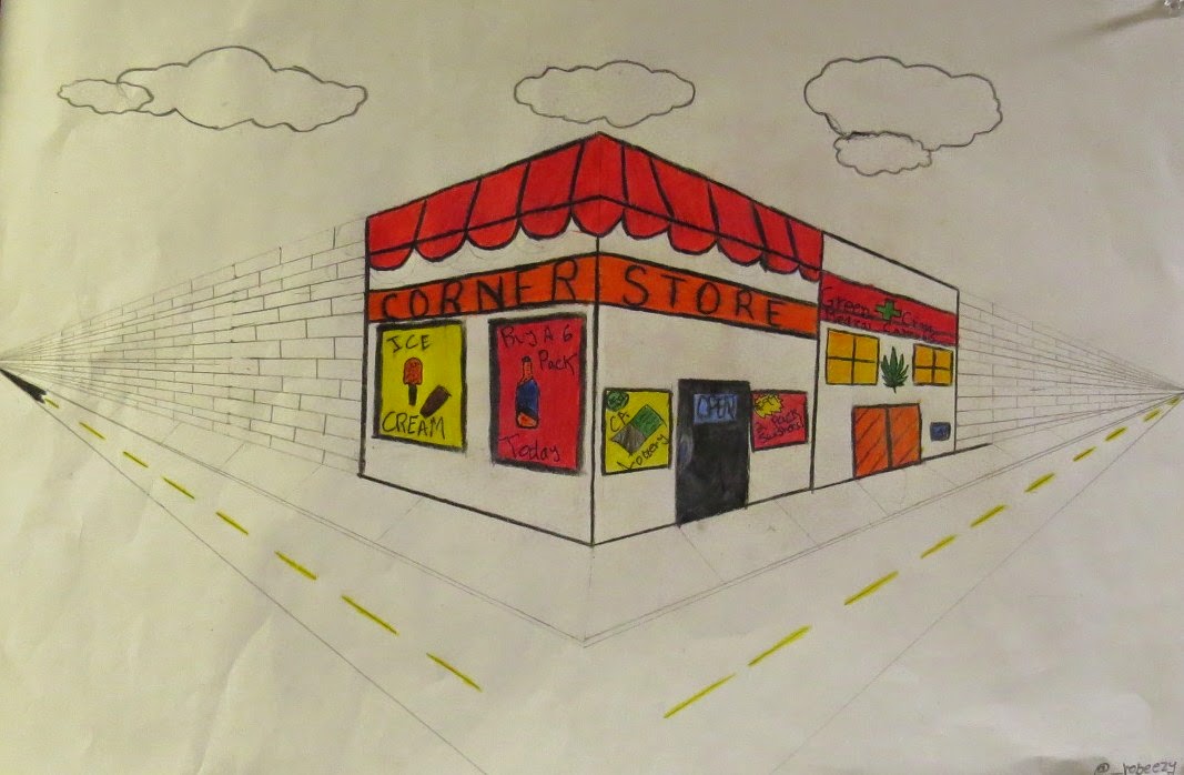 Illusion of space using linear perspective